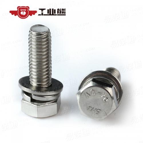 GBT9074.17六角头螺栓、弹簧垫圈和平垫圈组合件 304洗光 六角头带平弹垫组合螺钉 5X16